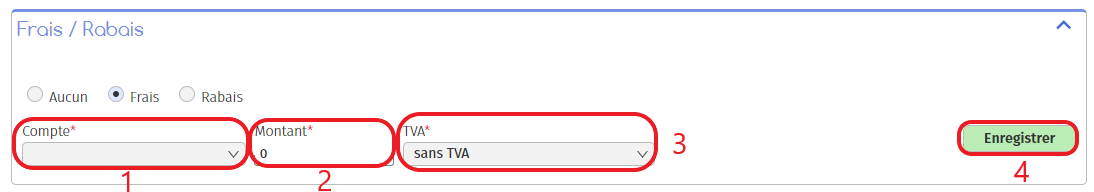 La méthode manuelle consiste à cocher manuellement un de ces cases pour ajouter des frais ou un rabais.