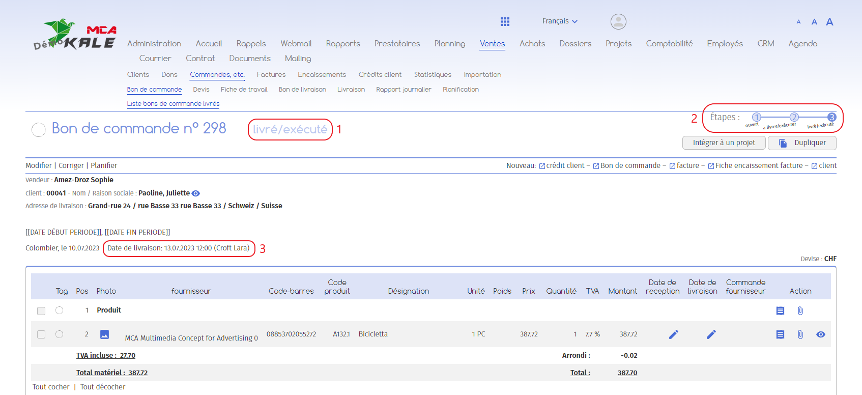 1.3.   3ème étape : livré/exécuté